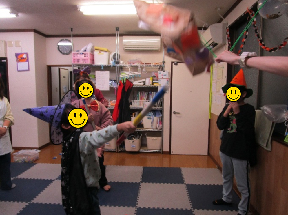 <毎年恒例ピニャータ割りは、スタッフが逃げ腰になる激しさでした>