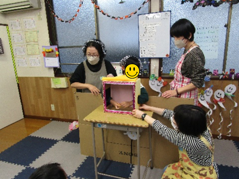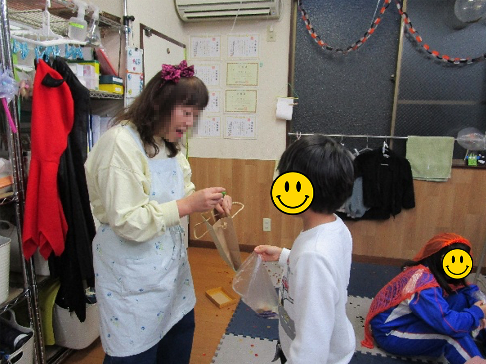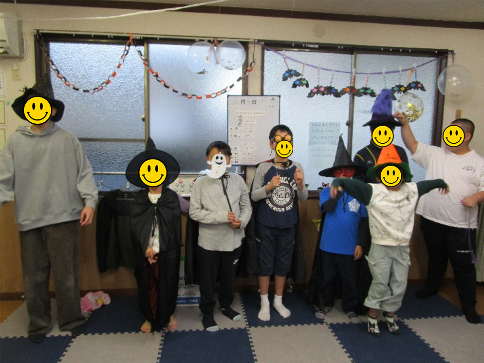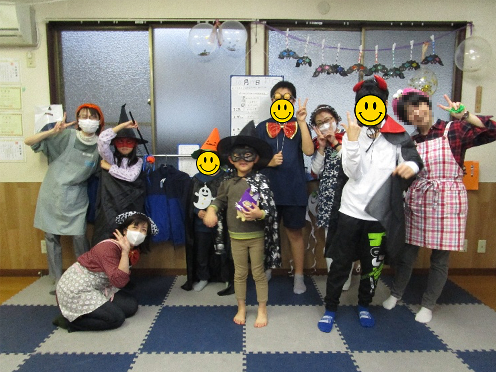 子供達は、事前に着たいコスチュームを持ってきたり、カチューシャやマントを付けて、仮装したり。