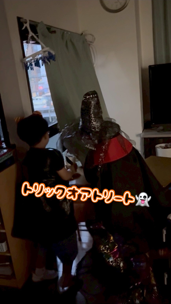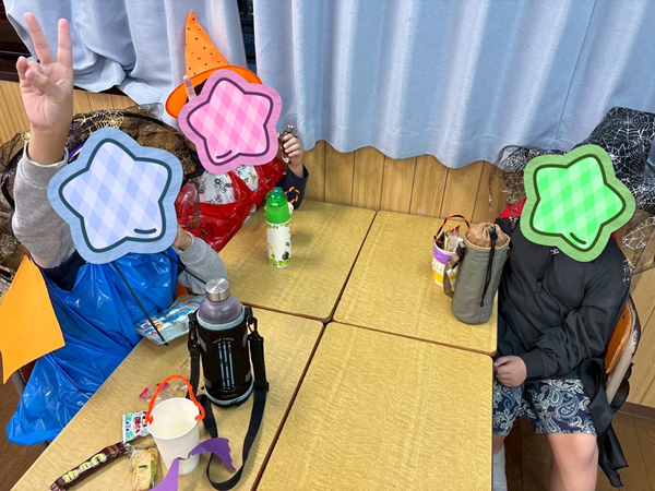無事に子ども達全員がお菓子を貰い、明るくした部屋でみんなで美味しく食べました🍪🍫