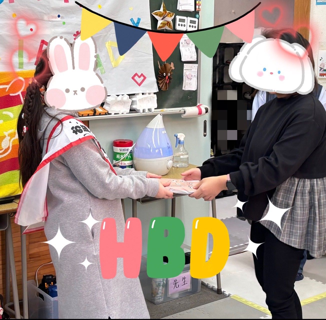 Happy Birthdayの歌&アルバム渡し、みんなで美味しいケーキを食べてお祝いしました🎂