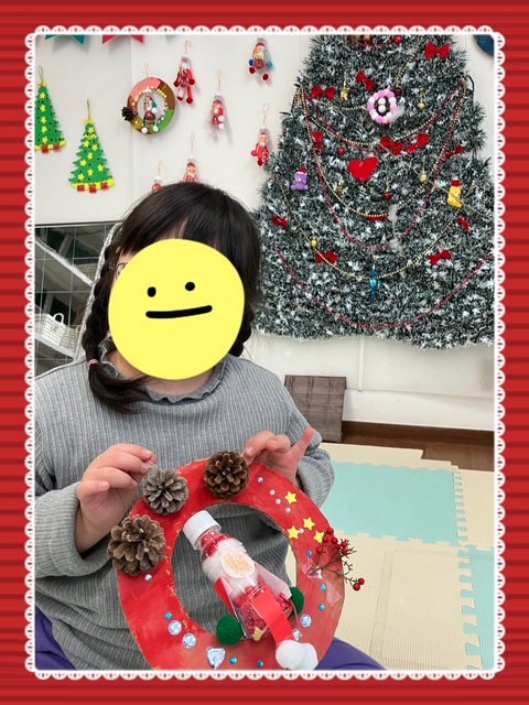 11月中旬から、クリスマス工作を始めました。ペットボトルのサンタにリース♡