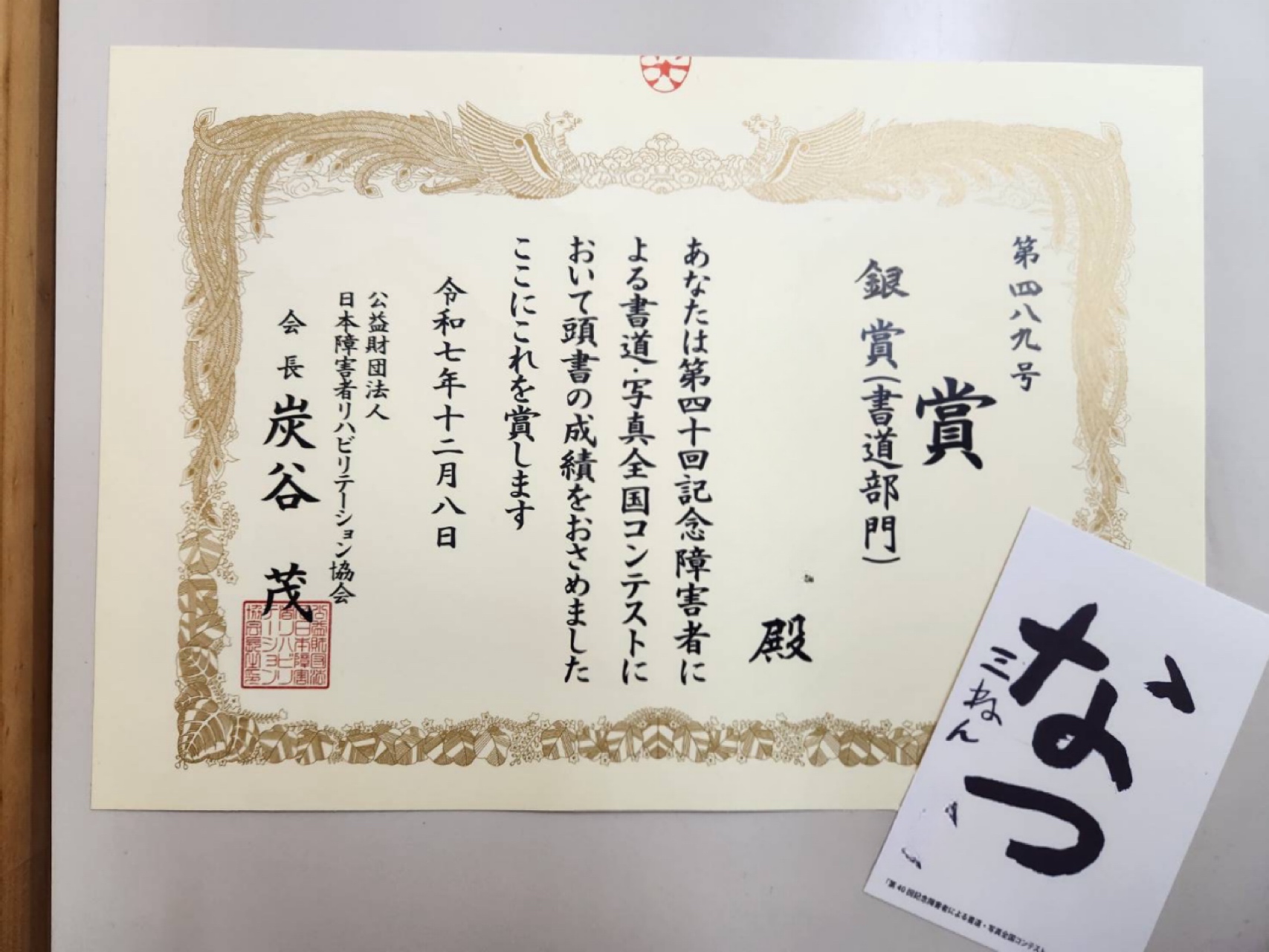 書道コンテストで、今回なんと!『銀賞』を取りました👏
