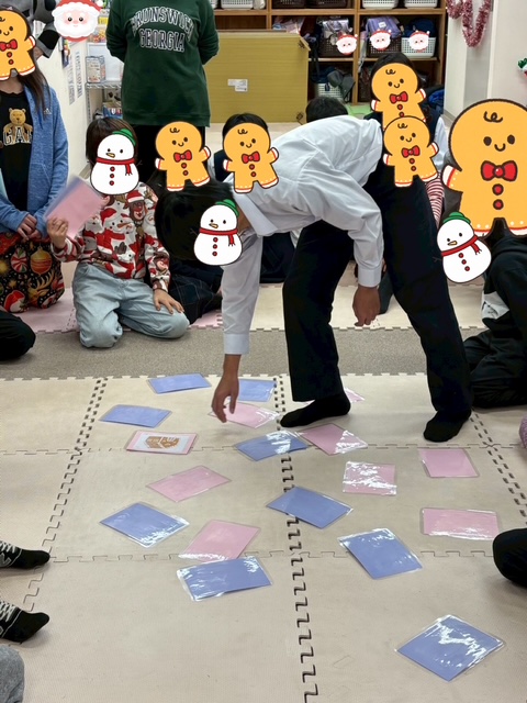 クリスマスカードを使った神経衰弱と輪っか取りゲームをしました😆