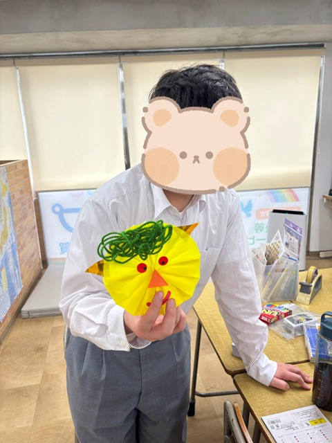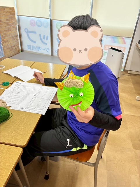 折り紙を蛇腹折りして、かわいい鬼を作りました👏