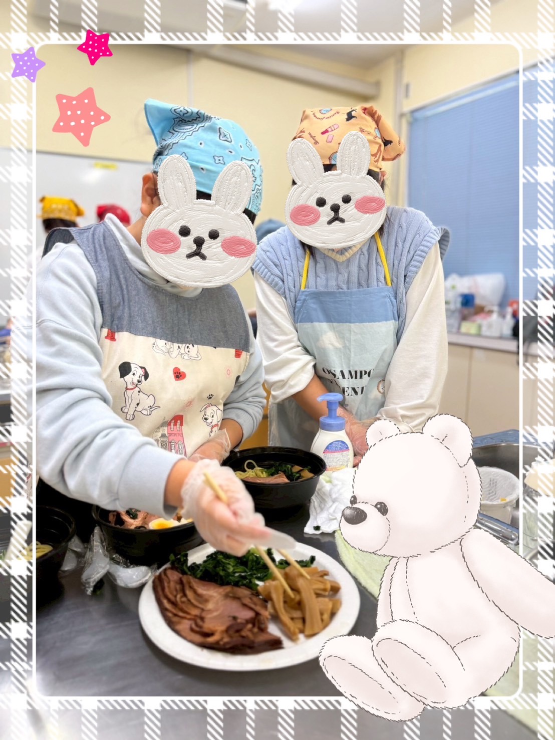 各班、みんなで協力して作ったラーメンは美味しくできあがりました🍜🍥