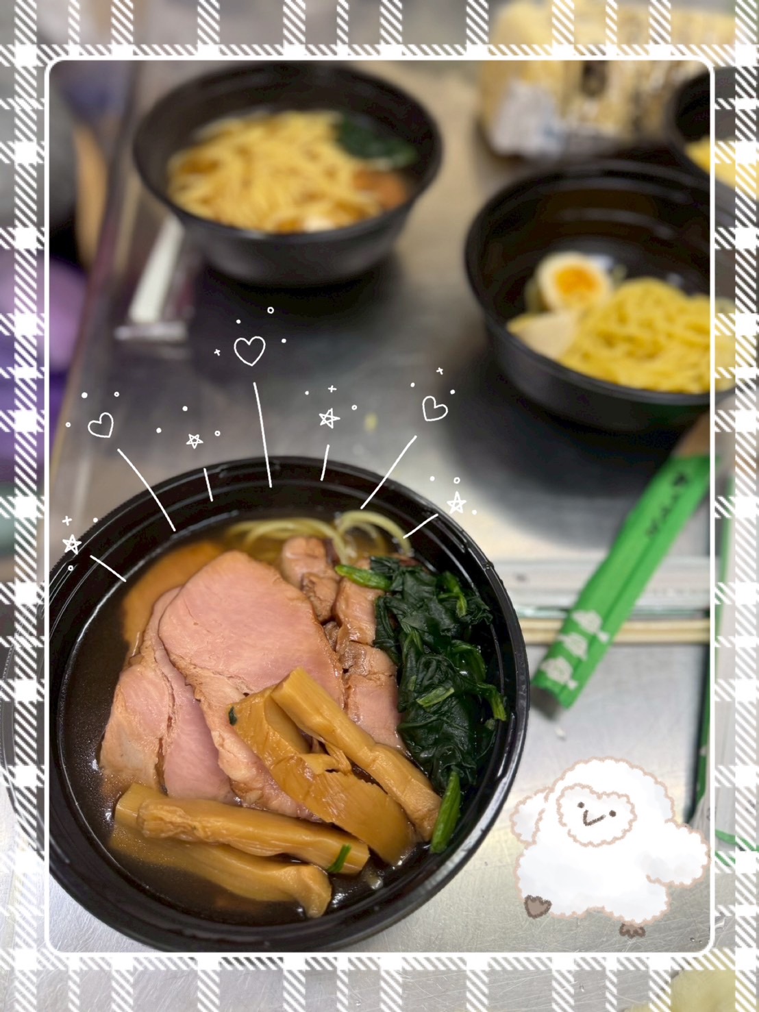 チャーシューやメンマ、ほうれん草は自分で好きなようにトッピング😄