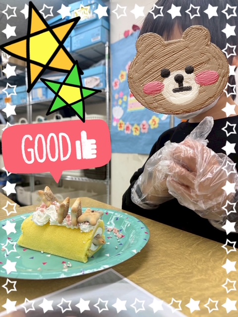 ロールケーキは、コアラのマーチや生クリームを使って豪華に飾り付けて食べました🍴