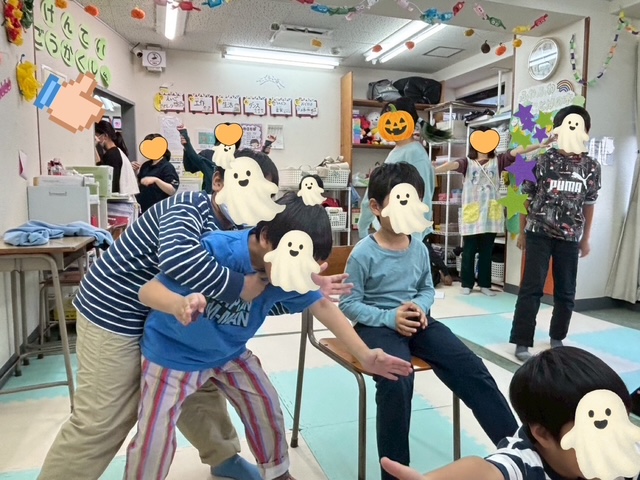 「お菓子釣り」では、お菓子の中にハロウィン工作でみんなが作ってくれたキャンディ達が紛れていました🍬でも、みんな器用に釣って3種類のお菓子をゲット🍭🍫