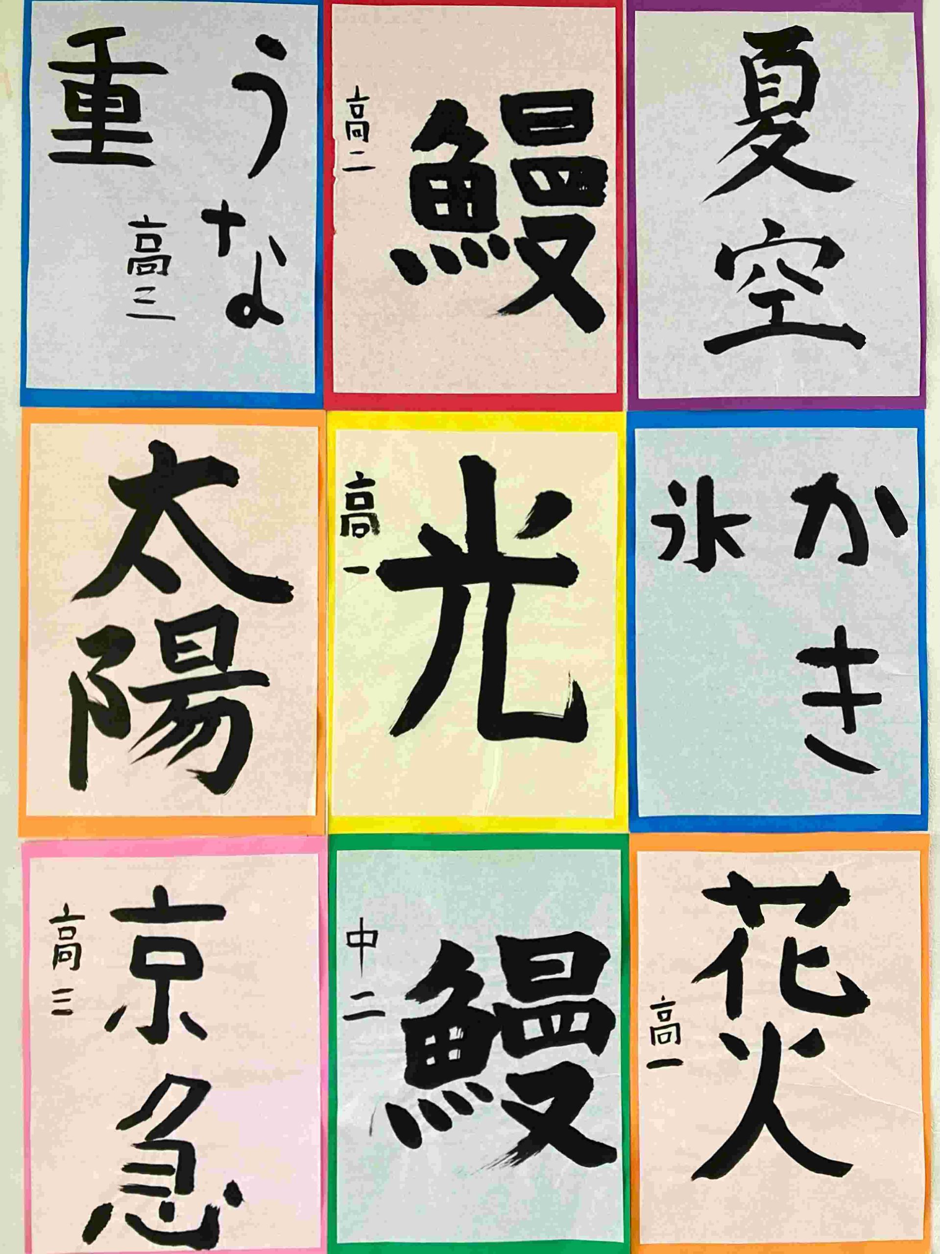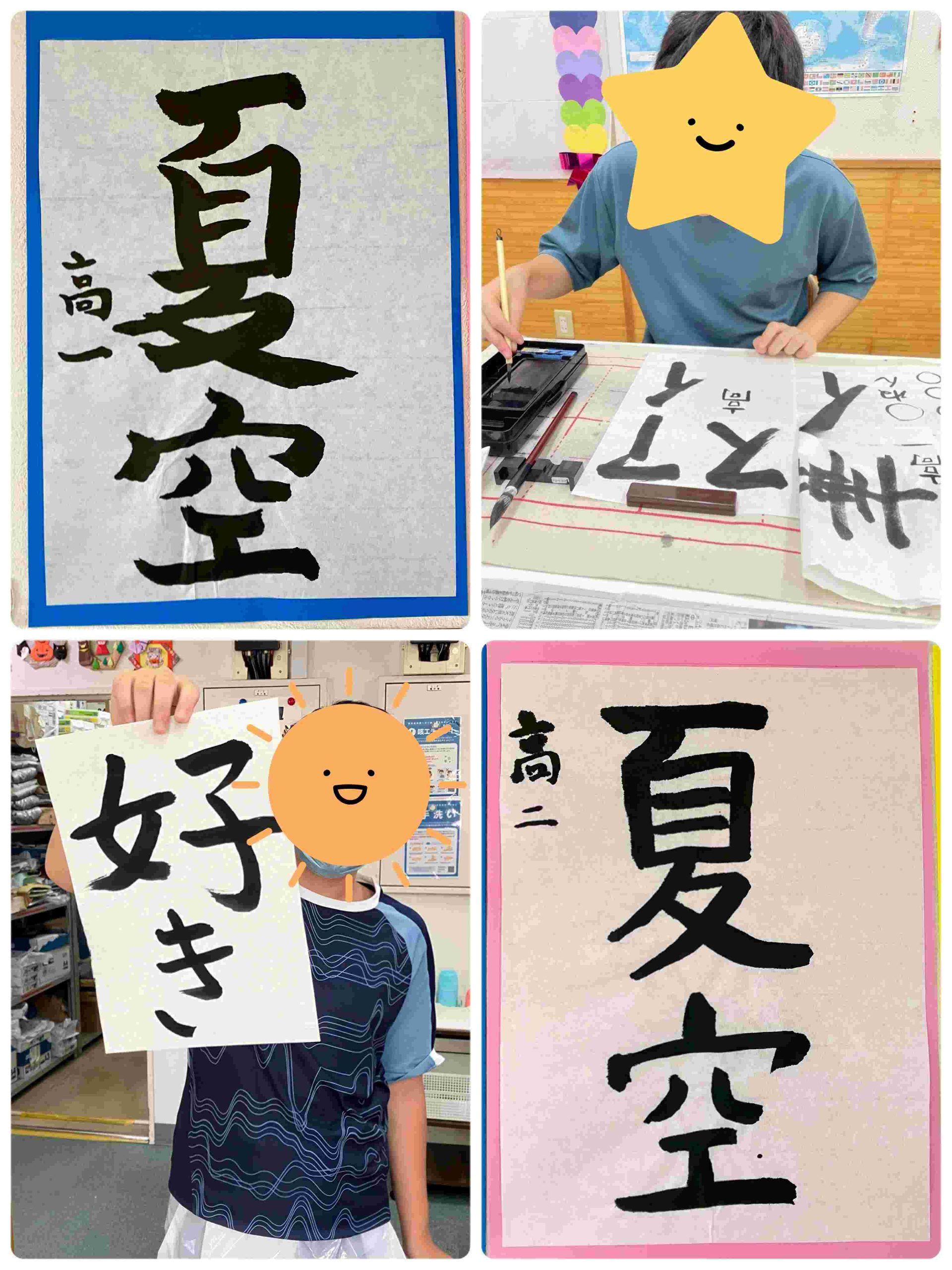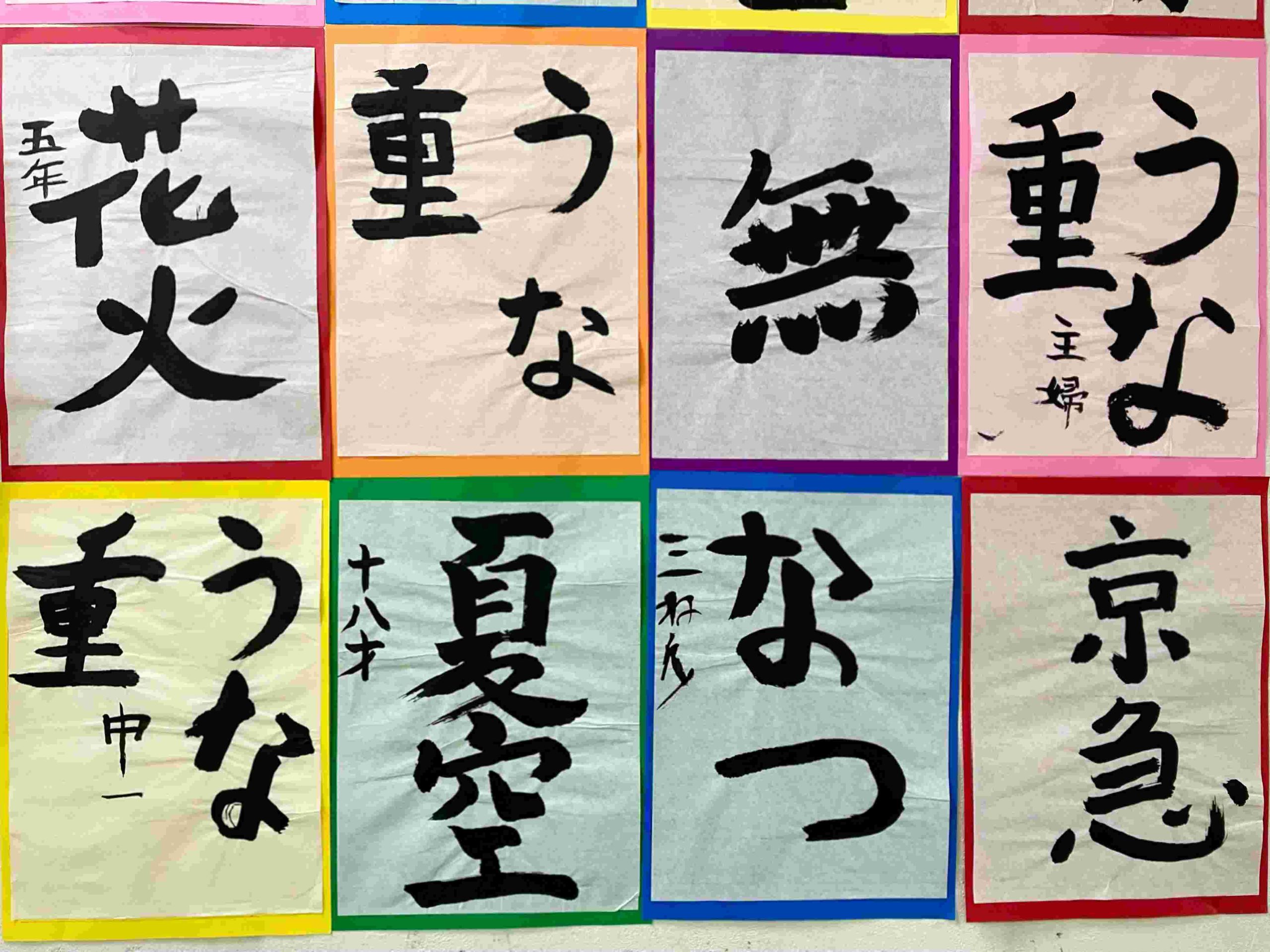 今回の習字の作品は平成町教室の入り口すぐに展示してあります!字がとてもきれいにかけています、子ども達と先生のユーモア溢れる『夏』の作品をぜひ見に来てください⛱🎆