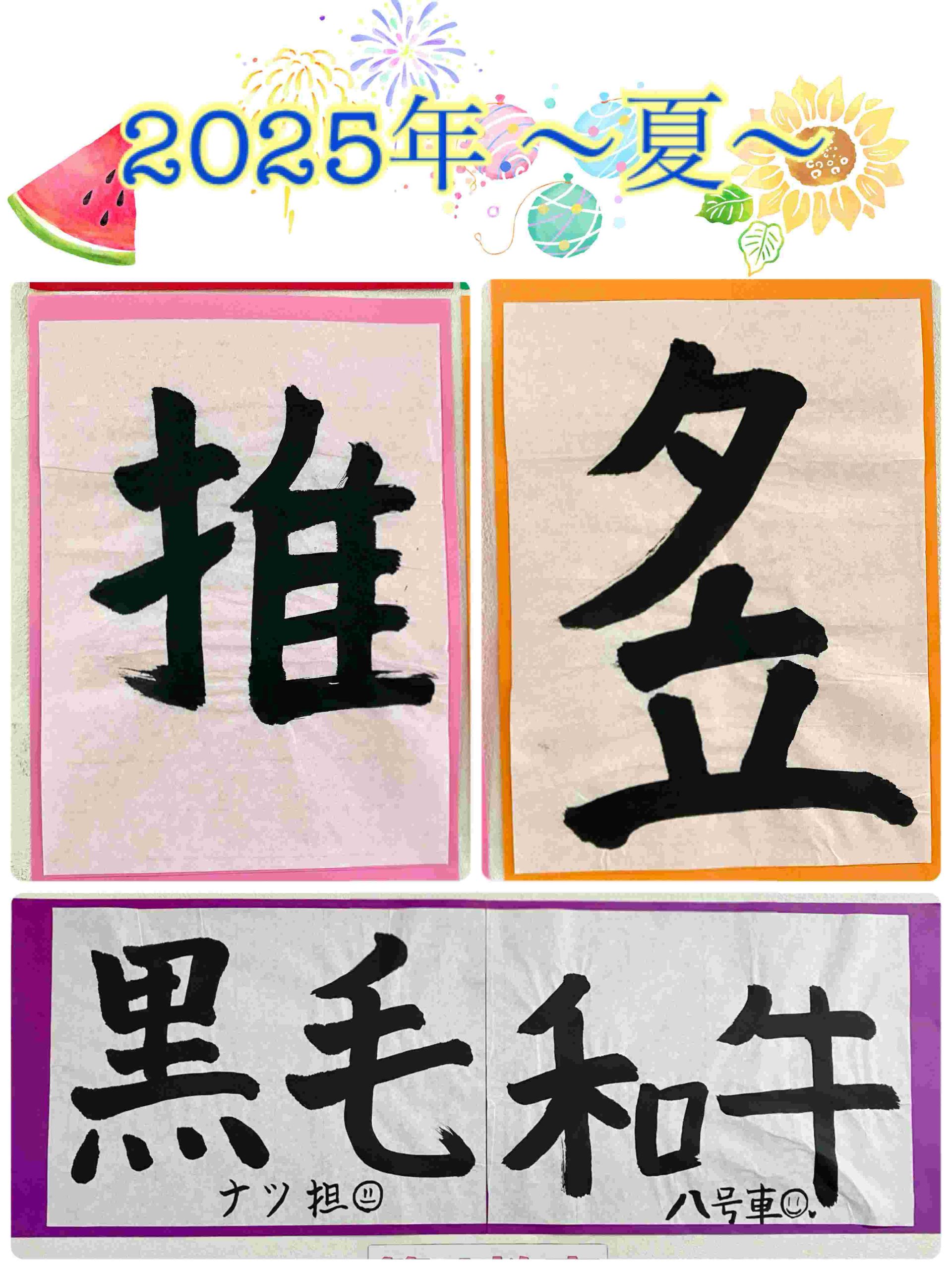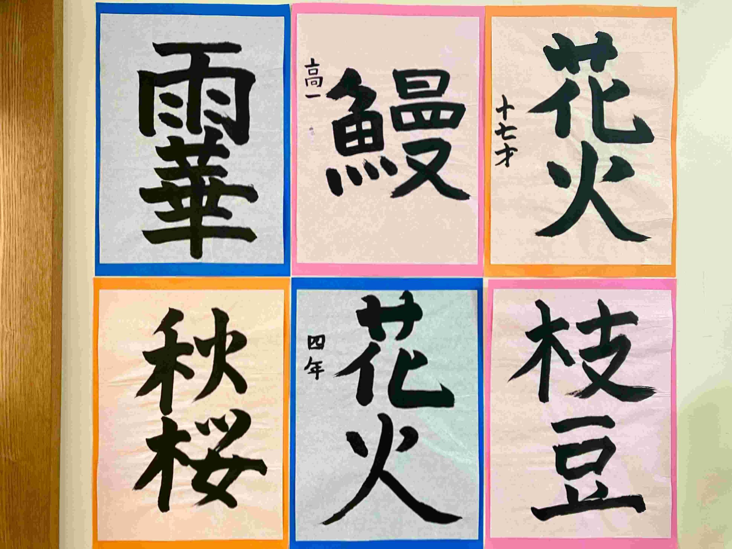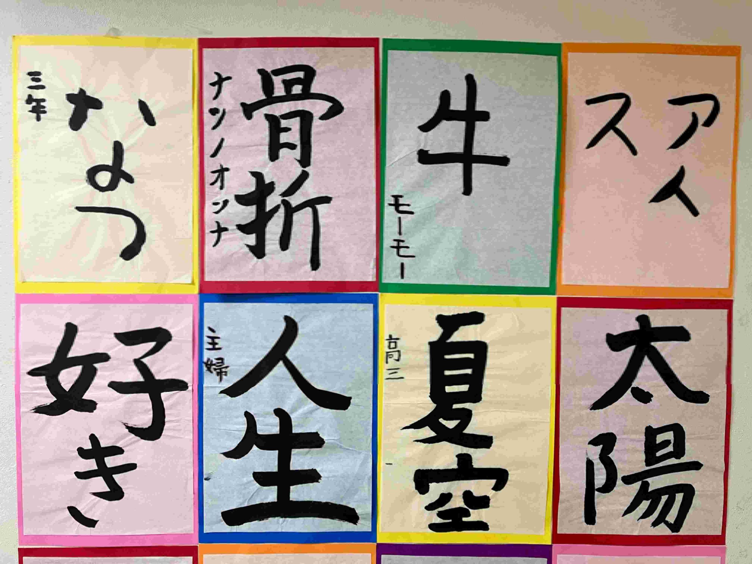 今回の習字の作品は平成町教室の入り口すぐに展示してあります!字がとてもきれいにかけています、子ども達と先生のユーモア溢れる『夏』の作品をぜひ見に来てください⛱🎆