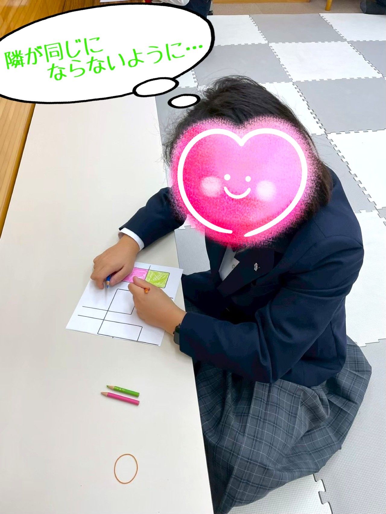 子どもたちも指導員も「あれ?」「なんで?」と悩みながら色を塗っていました😆