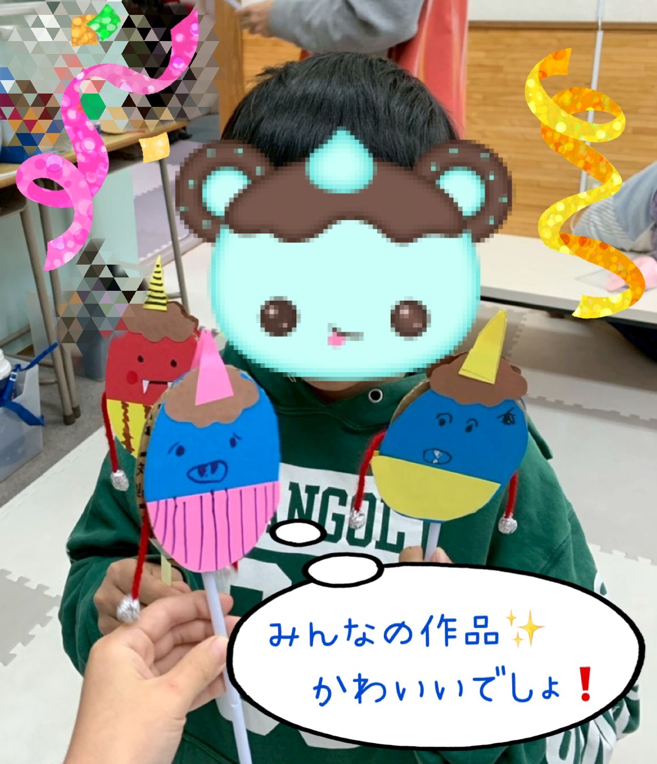 平成町教室では節分に向けて『鬼のでんでん太鼓』を作りました❣