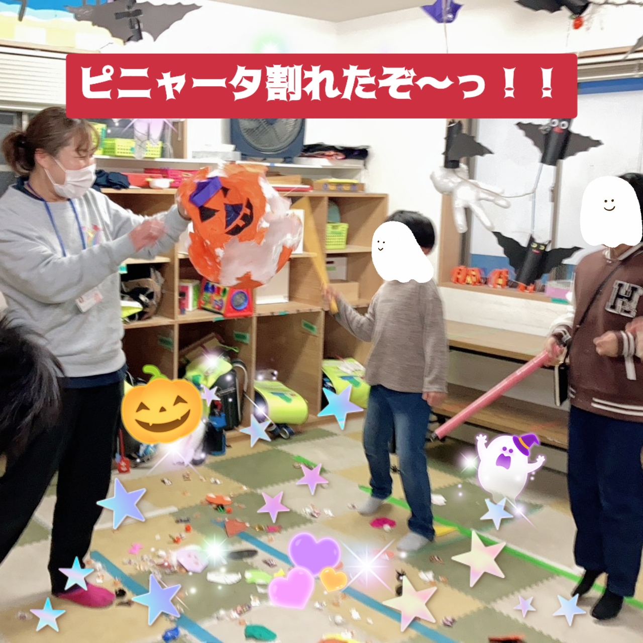 江ノ電は、部屋中におばけやこうもりが縦横無尽に飛び交い、至るところにカボチャの飾り物が!仮装した子ども達もテンション高く、まるでお部屋の中が遊園地の一場面を切り取った様でした!
