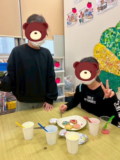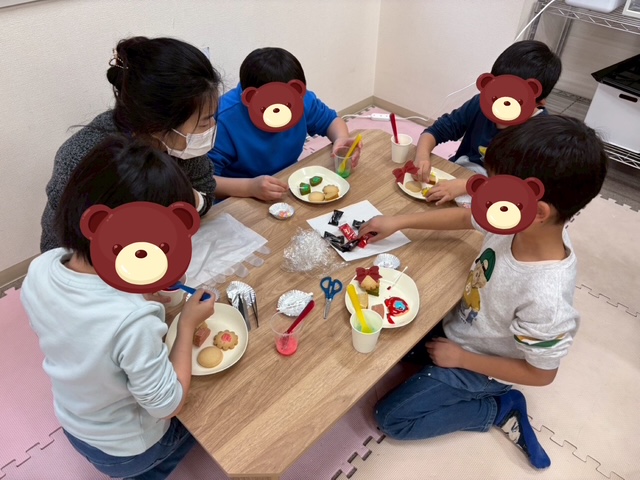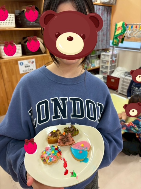 祝日にはバームクーヘンに溶かしたチョコをかけて飾り付けをしたり、クッキーにアイシングでデコレーション🍪