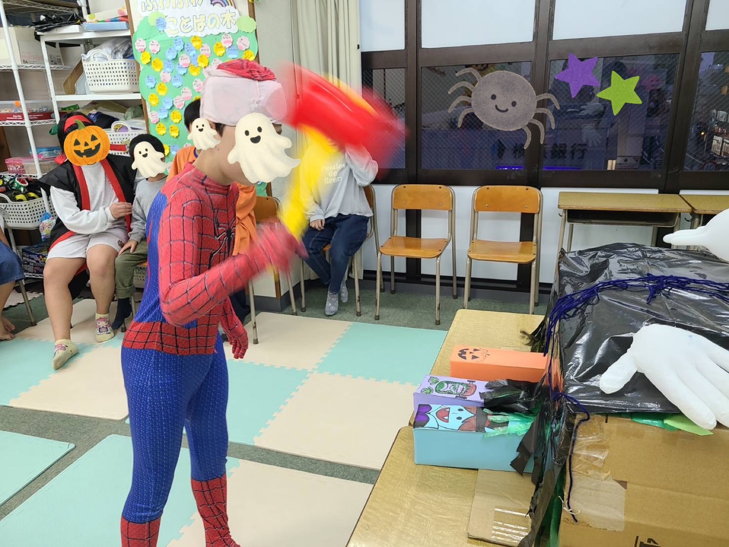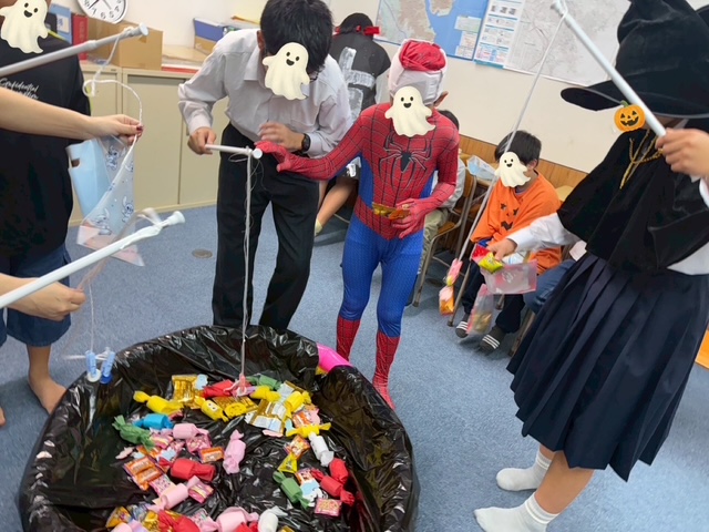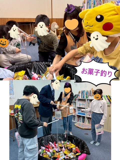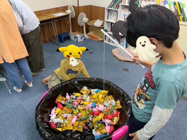 「お菓子釣り」では、お菓子の中にハロウィン工作でみんなが作ってくれたキャンディ達が紛れていました🍬でも、みんな器用に釣って3種類のお菓子をゲット🍭🍫