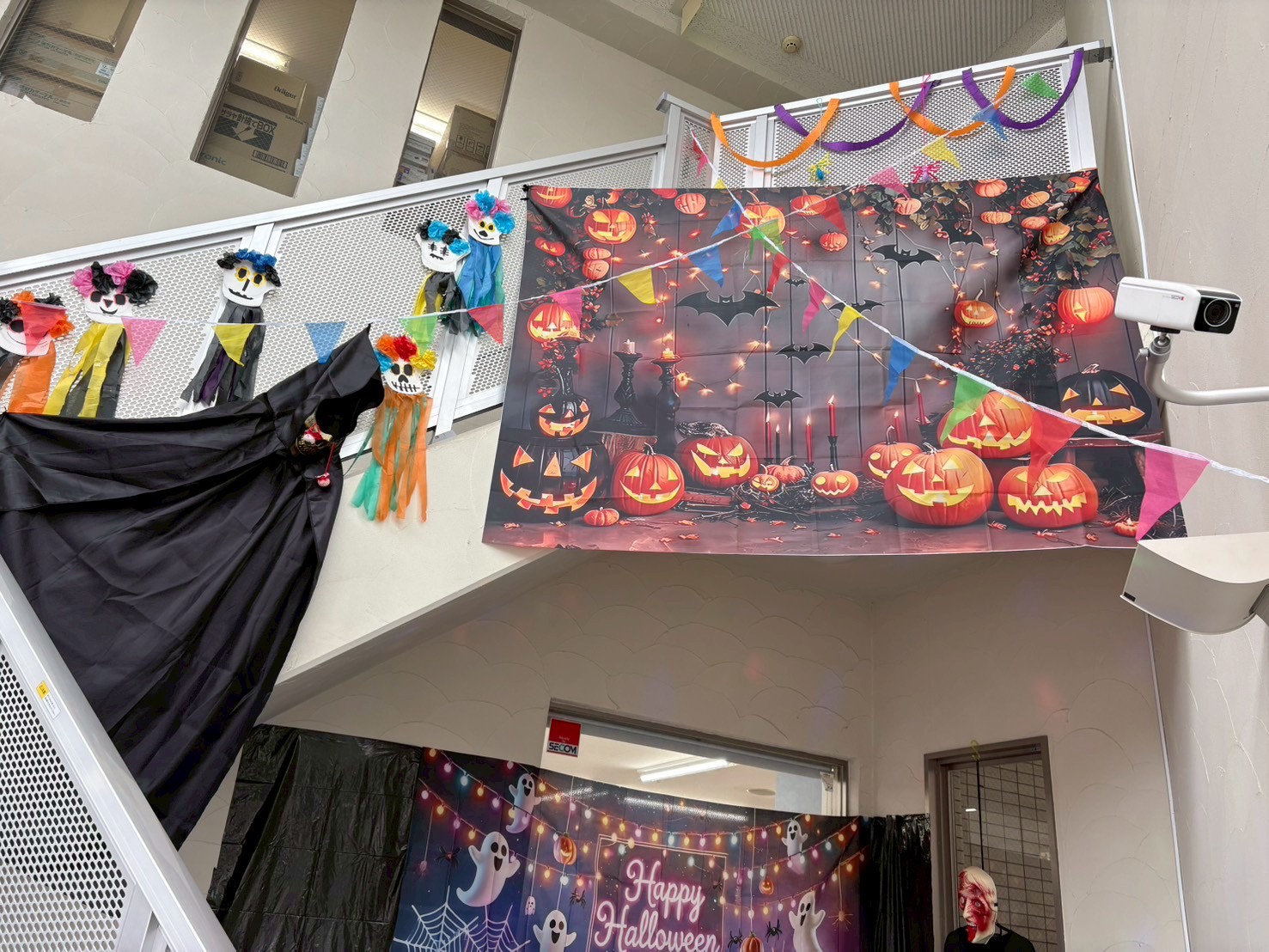 また、オーナーさんやお隣の企業様のご協力もあり、建物全体をハロウィン仕様に🎃👻