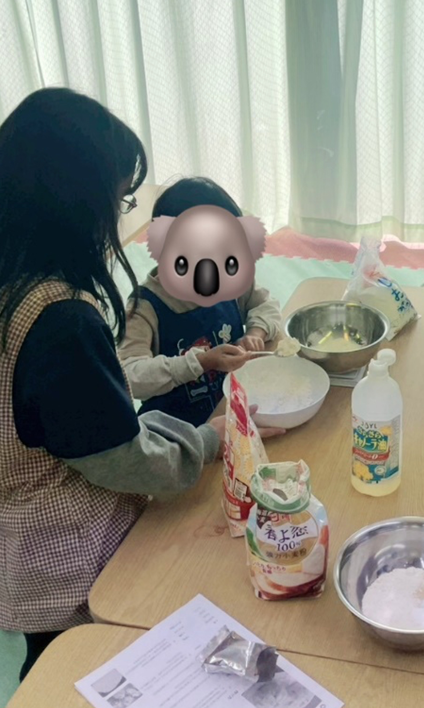 この日はうどん作りに挑戦!!自分たちで粉や水の分量を計って袋で混ぜたり、こねたり、「おいしくな~れ!」とたくさん踏んだり、伸ばしたり、切ったりと奮闘しながら完成したうどんは「最高👍」「おいしい😋」みんな上手にできました👏👏