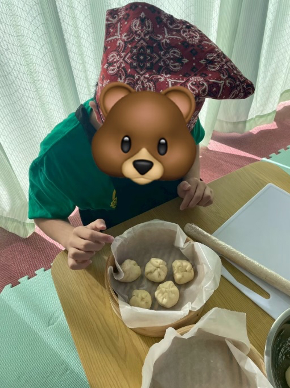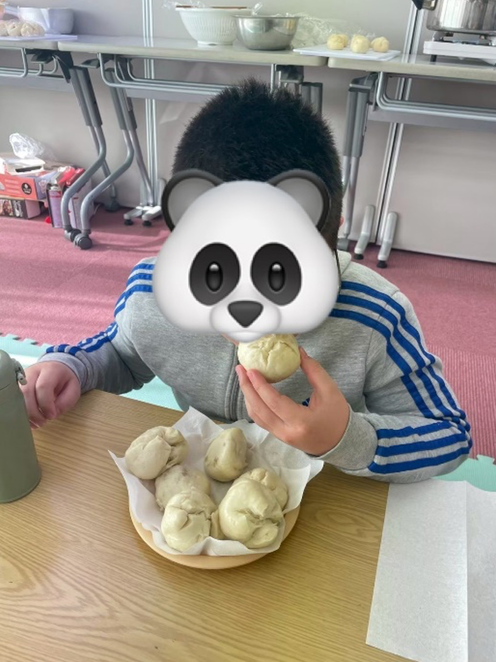 自分たちでレシピをみながら分量を計り、こねたり、包んだりして頑張った豚マンはとてもおいしくできました😋